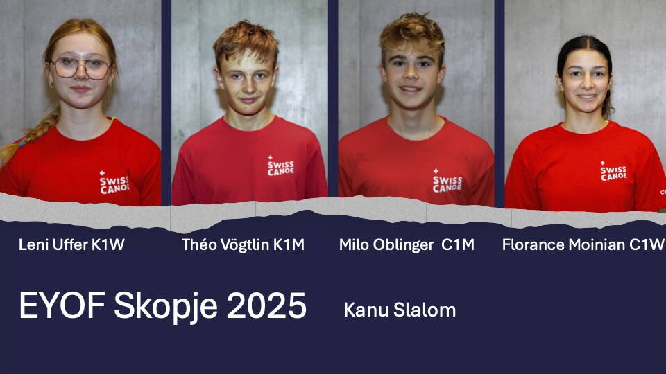 Swiss Olympic gibt die Selektion für das European Youth Olympic Festival bekannt. Im Kanu Slalom werden Leni Uffer (K1W, Kanu Club Chur), Florance Moinian (C1W, Wasserfahrverein Zürich), Théo Vögtlin (K1M, Kanu Club Brugg) und Milo Oblinger (C1M, Kanu Club Bern) teil der Swiss Olympic Delegation sein.
